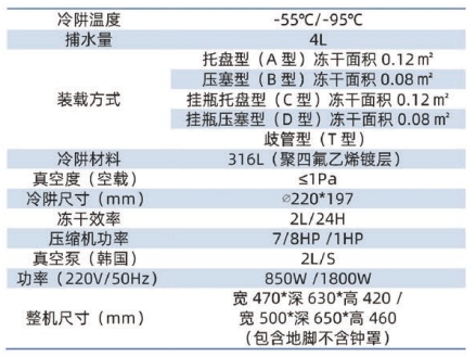 LT50/95系列真空冷冻干燥机有五款基本配置: